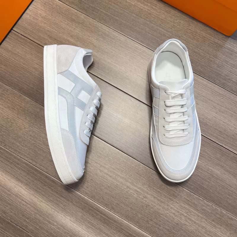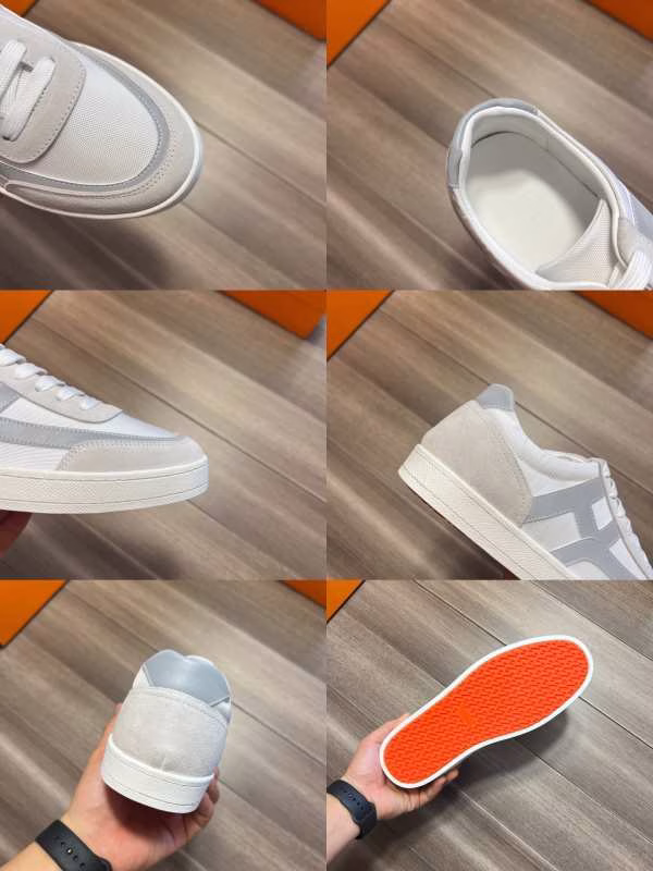 Original suede calfskin, palm-patterned cowhide, and brand canvas fabric with the brand’s H totem sewn on