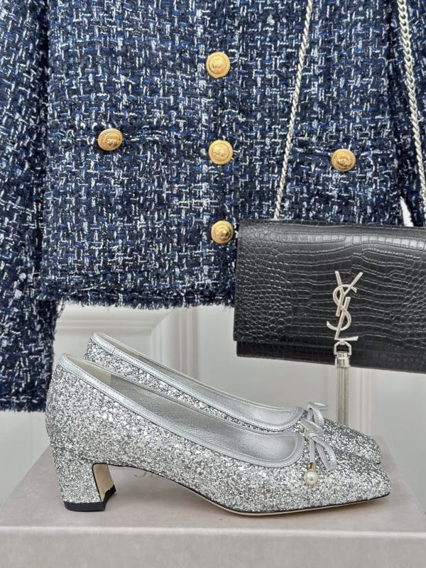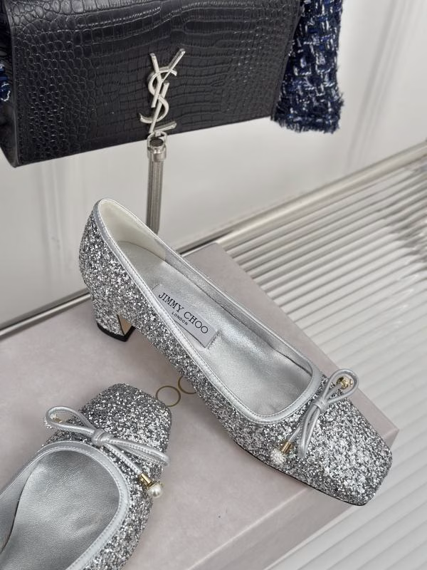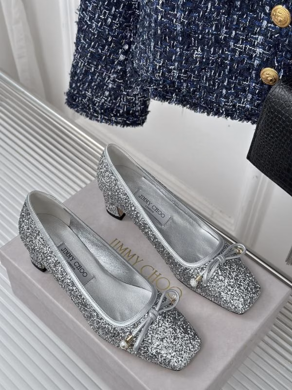 Jimmy Choo Classic Bow Pearl Block-Heel Ballet Flats