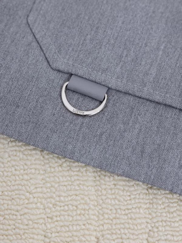 This 2024 new LOEWE three-pocket wool utility lapel jacket coat, crafted from extremely high-grade custom fabrics with exquisite craftsmanship, exudes unparalleled luxury and street style. The outer fabric is made of 100% wool twill, which feels soft and full of texture, while the interior features a custom twill silk lining, adding a touch of luxury. In terms of design, the custom details are particularly impressive, including an 11×12.5 genuine leather label (with composite cutting and embossing), 2cm engraved D-ring metal buckles, 23mm horn buttons, and 10mm base horn buttons. Every detail showcases the craftsmanship of the LOEWE brand.