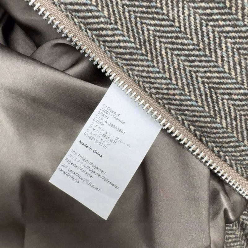 This LOEWE 2025 Early Spring new Gray Series premium herringbone casual jacket coat showcases a highly textural urban style with the sharp and sleek tailoring of a flight jacket and utility-style pocket designs. The spliced LOGO leather patch on the back adds a unique brand vibe, while the wool herringbone fabric not only boasts excellent texture but also highlights high-end quality. The design of corduroy splicing on the lapel is distinctive, being both stylish and highly practical. The color is the currently popular “Maillard” tone, which is fashionable and versatile, suitable for various dressing styles.
