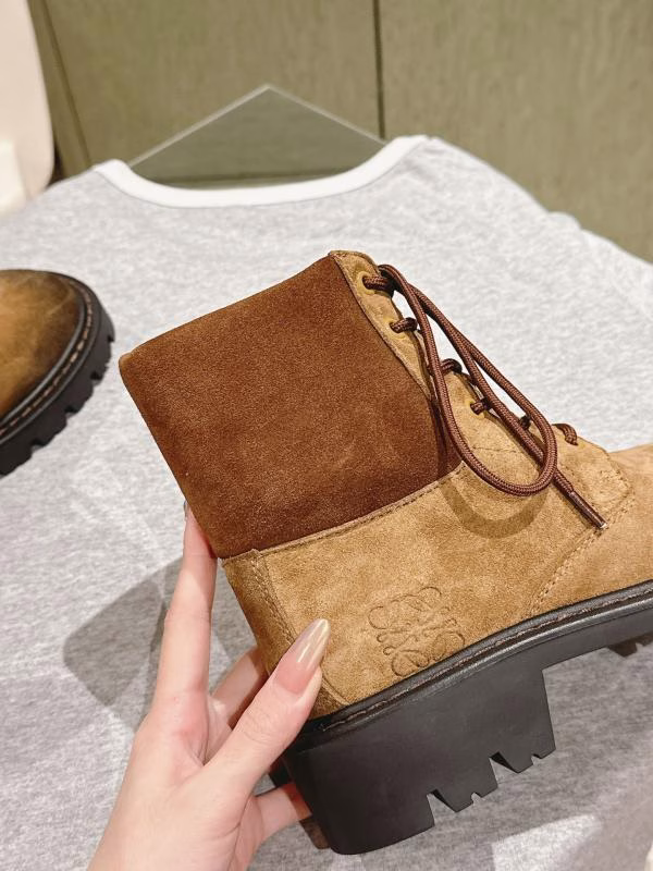 LOEWE Celebrity-Inspired Round-Toe Lace-Up Ankle Boots
