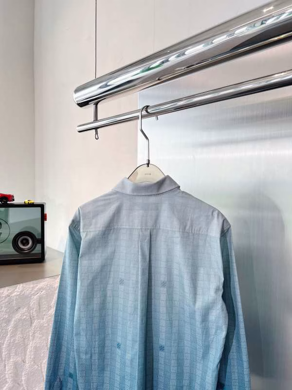 LV Louis Vuitton 2022 SS Latest Damier Stripe Long-Sleeve Shirt. This cotton poplin shirt features a double-sided printing technique, with the LV Damier stripes dyed in gradient colors, mimicking the light and shadow changes of spring nights. The subtle pin buckle at the collar adds brand elements. Made of 100% cotton, it has a standard fit.
