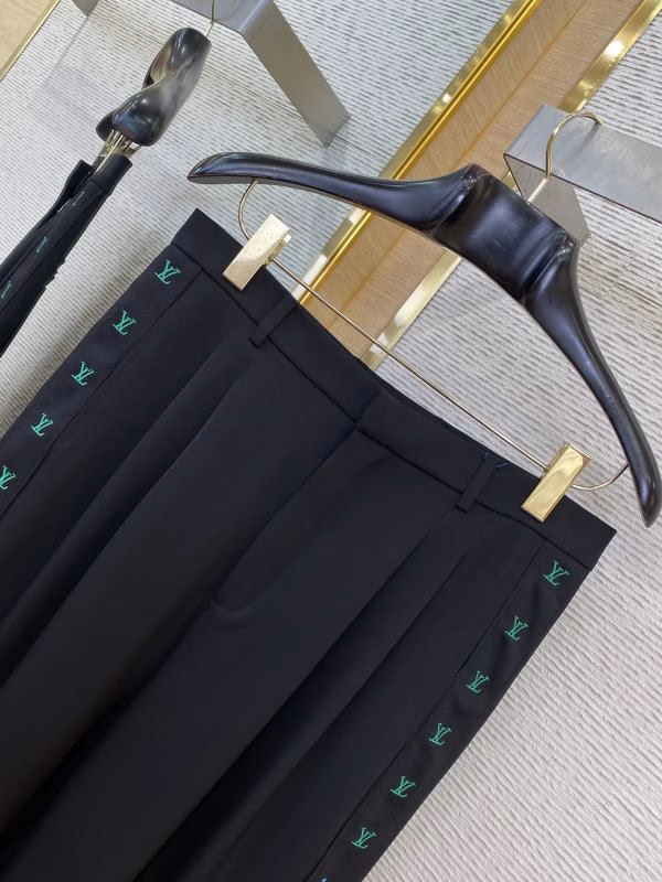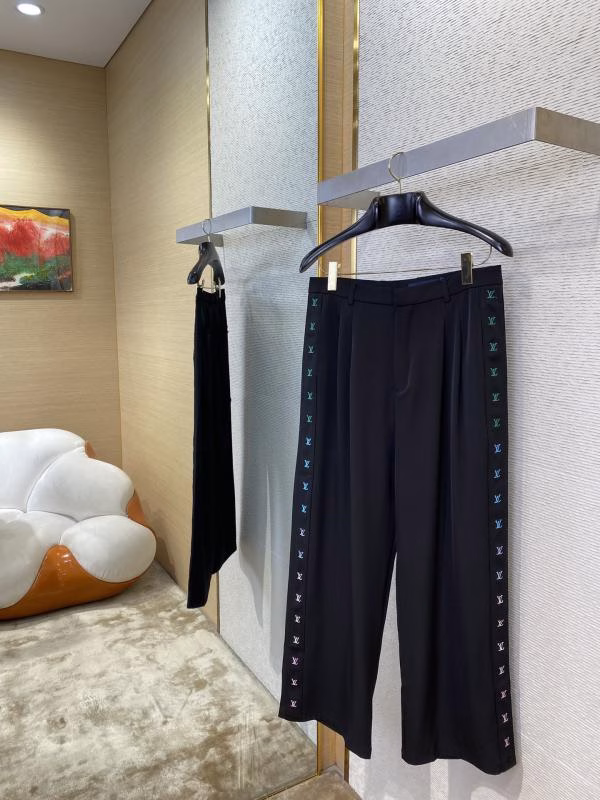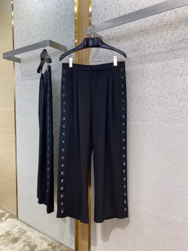 The side of the trousers is decorated with LV logo gradient webbing, which is meticulously embroidered by Tajima machines. The effect highly restores the original version, with natural and smooth gradient transition. The back pockets adopt an appliqué design, and the overall fit is loose and neat with fine tailoring and exquisite craftsmanship, suitable for daily wear, commuting or street-style matching.
