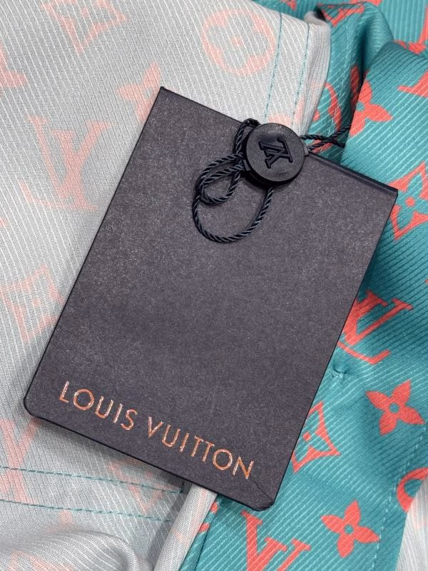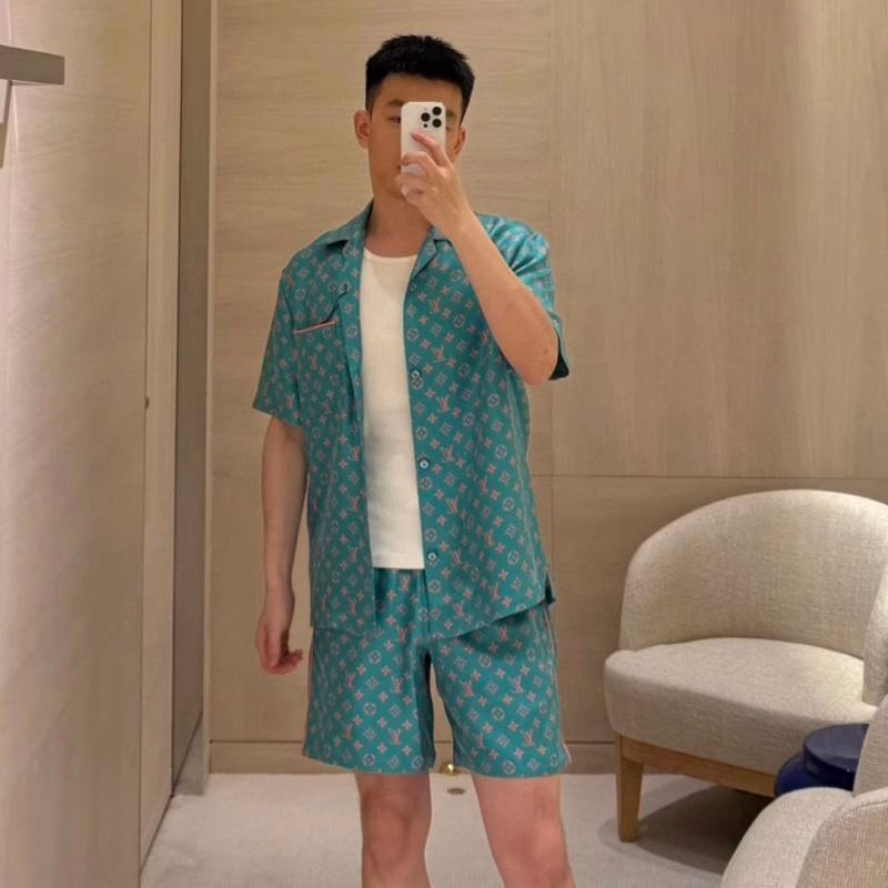 This LV silk printed shirt set presents summer fashion style with high-end fabric and exquisite details. It is a luxurious set that integrates comfort, texture and brand recognition, allowing both men and women to easily show a high-end casual style.