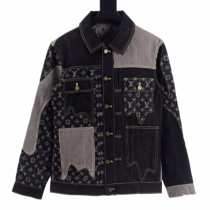 This Louis Vuitton LV Deconstructed Patchwork Monogram All-Over Print Utility Denim Jacket has become a representative of modern fashion with its unique design and exquisite craftsmanship. The classic monogram pattern and deconstructed patchwork design, combined with delicate vintage washing and perfect craftsmanship details, not only offer you a comfortable wearing experience but also demonstrate your pursuit of high-end fashion. If you are an LV fan, this jacket is undoubtedly a must-have item for you!