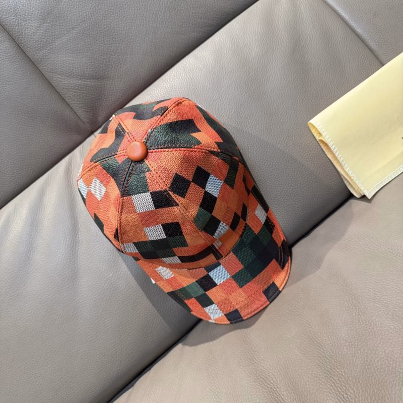 LV High-Quality Colorful Checkerboard Baseball Cap – Top-Grain Cowhide Visor Cap, Adjustable, Unisex