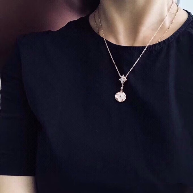 Absolutely stunning! LV Double Flower Necklace [Louis Vuitton LV new style LV limited edition natural white mother-of-pearl earrings, extremely eye-catching and skin-whitening, perfect in details! 18k gold plating process, counter version, 1:1 quality Super beautiful.. A must-have for goddesses Double Flower