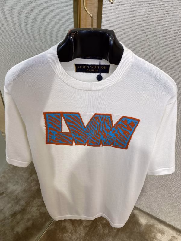 LV Louis Vuitton Leopard Print Letter Intarsia Short-Sleeve Crew Neck T-Shirt