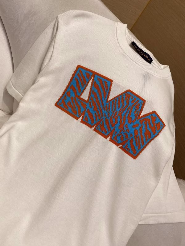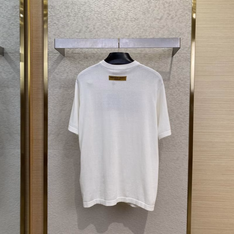 This LV Louis Vuitton leopard print letter intarsia short-sleeve crew neck T-shirt is made of 40s double-strand combed cotton fabric, offering a soft and comfortable wearing experience. It is skin-friendly and breathable, ensuring all-day comfort. The leopard print letter intarsia pattern on the chest is full of fashion sense, showing the brand’s unique design style, and the brand label detail on the back collar adds a touch of high-grade texture. The wool washing process makes this T-shirt not easy to shrink or deform, maintaining its shape and comfort for a long time.