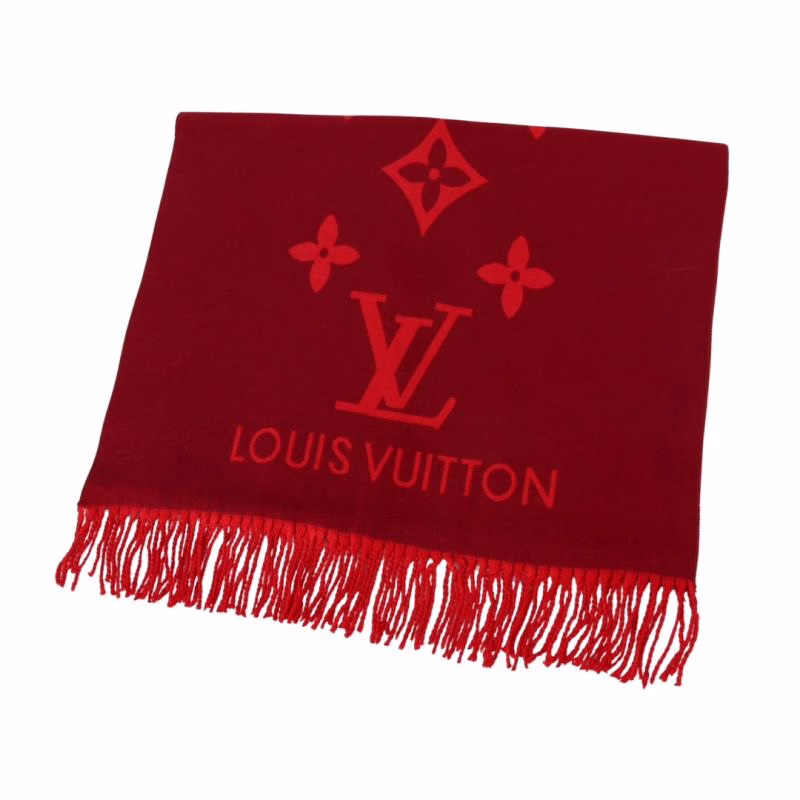 LOUIS VUITTON Reykjavik Pure Cashmere Double-Sided Fringed Scarf for Women – Red (Code: M90895)