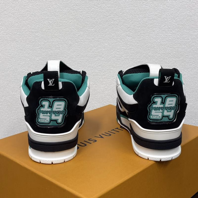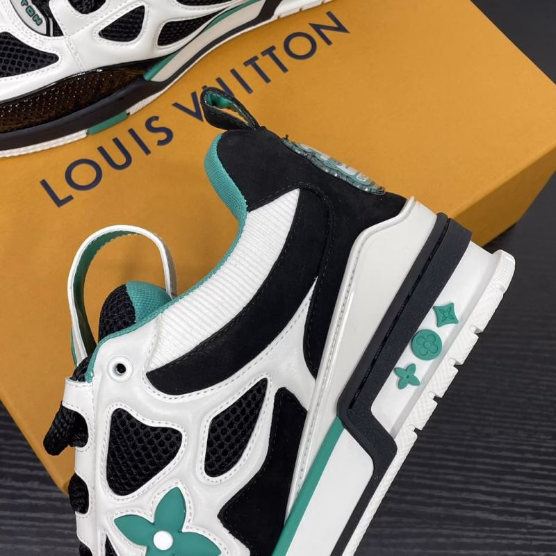 This LV Skate sneaker blends technical mesh fabric, matte calfskin, and suede leather to creatively reimagine the 1990s style. The widened collar and oversized tongue continue the iconic elements, with a rubber-wrapped toe and a double-lace design. The side features a large Monogram print, while the tongue and heel are adorned with “LV 54” badges. The rubber outsole is decorated with Monogram flowers, and the mesh lining is paired with a cotton insole, ensuring the ultimate comfort as always. A fine inheritance of craftsmanship with quality as the paramount, it is truly worth owning! Comes with a full set of original packaging!