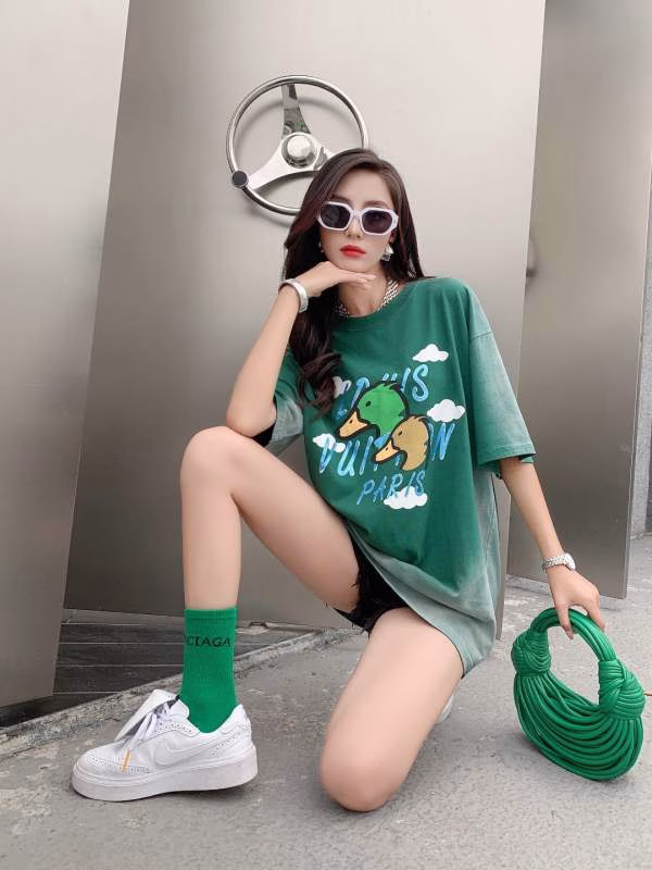 LV (Louis Vuitton) vintage distressed washed Nigo collaboration duck pattern couple T-shirts (suitable for live streaming). Made of 16-count double-single fabric with a weight of about 230 grams, it has an excellent hand feel. Unisex style. Colors: as shown in the picture. Sizes: S, M, L, XL.