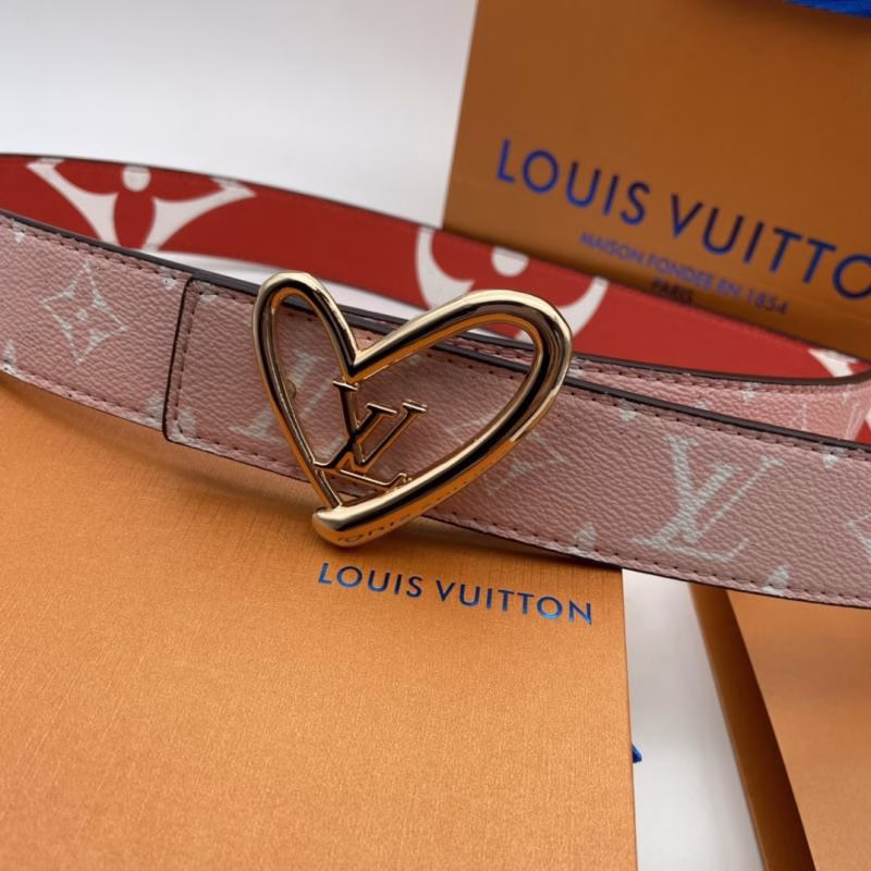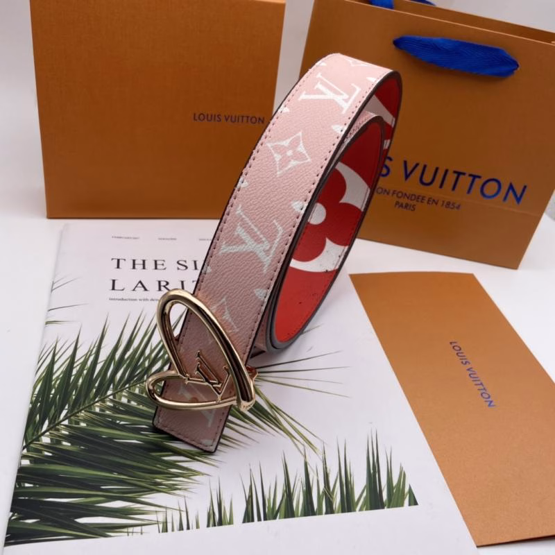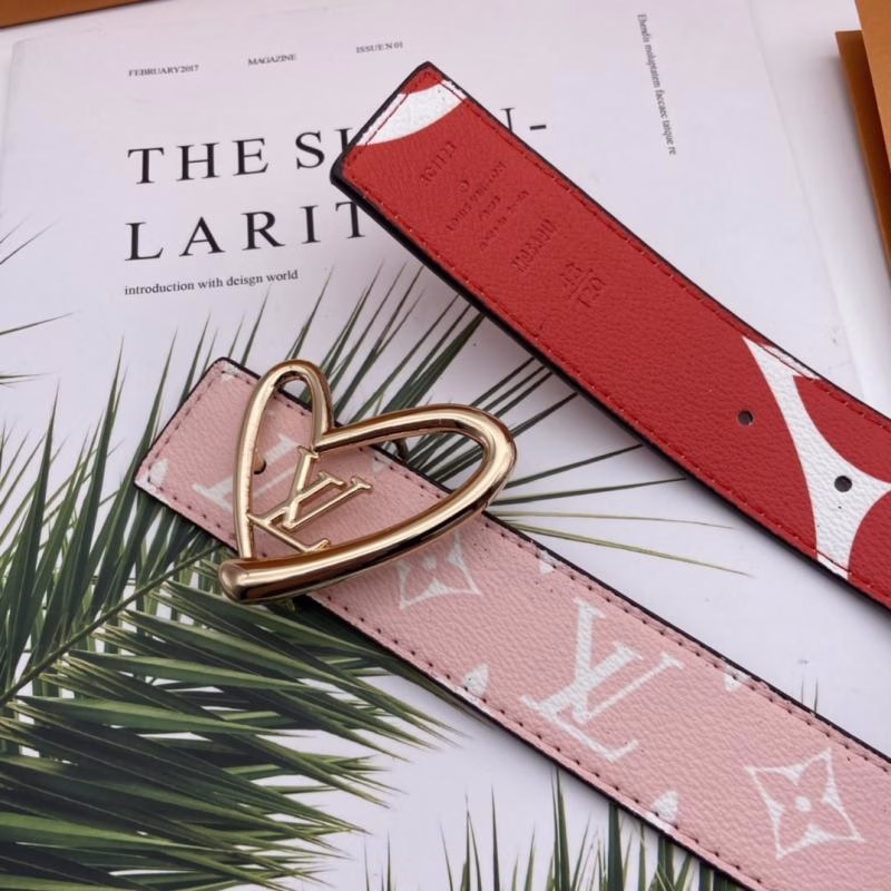 This LV Louis Vuitton women’s belt is an exclusive limited-edition piece, featuring a unique design paired with a heart-shaped buckle that balances playfulness with high fashion. Adopting LV’s classic two-tone design, it combines pink with a gold heart-shaped buckle engraved with the LV logo—seamlessly integrating the brand’s iconic design elements to infuse every detail with sophistication and luxury. Its one-of-a-kind limited-edition status makes this belt a truly unique fashion staple.