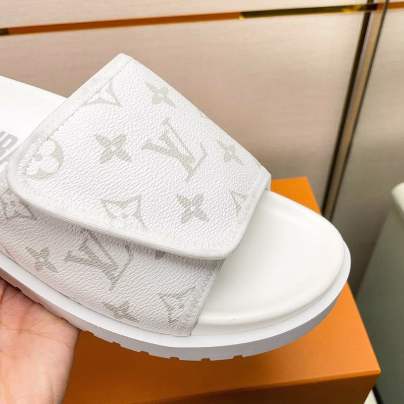 LV top-tier purchasing: popular men’s slippers from Louis Vuitton. Synchronized with counter versions. The upper is made of imported Italian cowhide, with a cowhide insole. Outsole: original factory-exclusive authentic outsole, featuring an exclusive specially molded sole for super comfort. These are original factory follow-up products of high quality, allowing free access to counters. Comparisons are welcome. Sizes: 38-47.