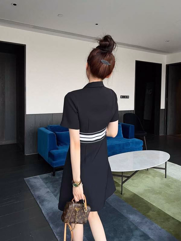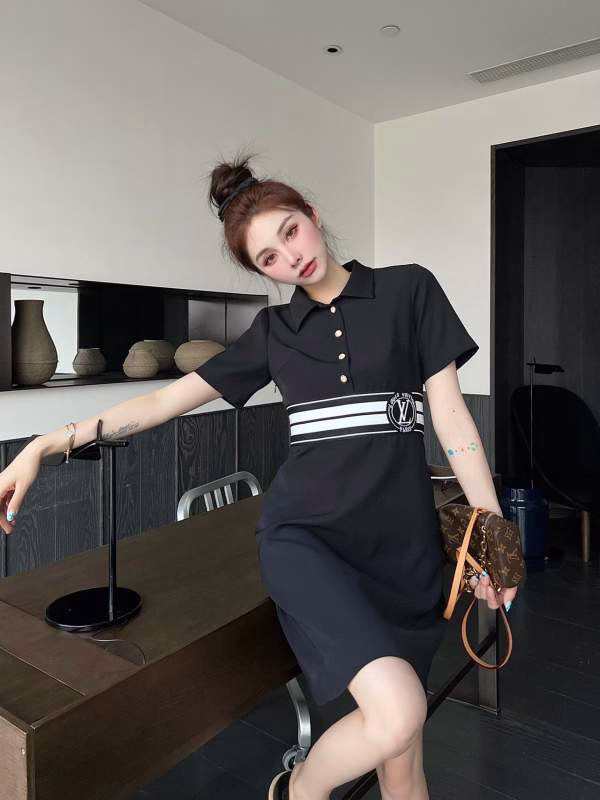 Trend-setting new LV dress, with ribbed paneling at the waist, classic A-line silhouette, available in two colors and three sizes: S, M, L.