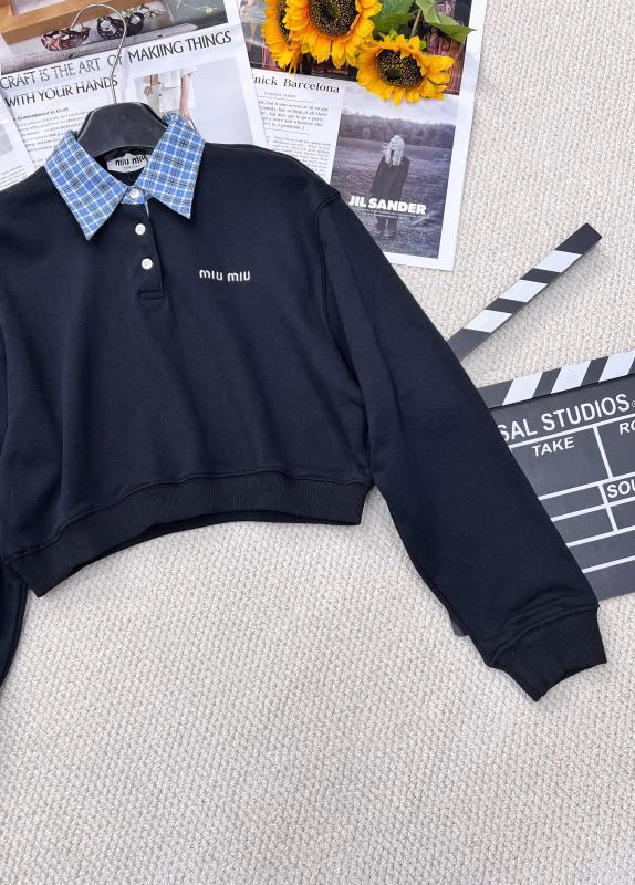 MIU MIU Early Spring New Letter Embroidery Polo Short Sweatshirt