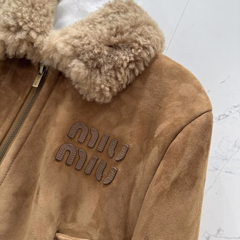Miu Miu High-end Suede Imported Fur and Leather Short Jacket Coat