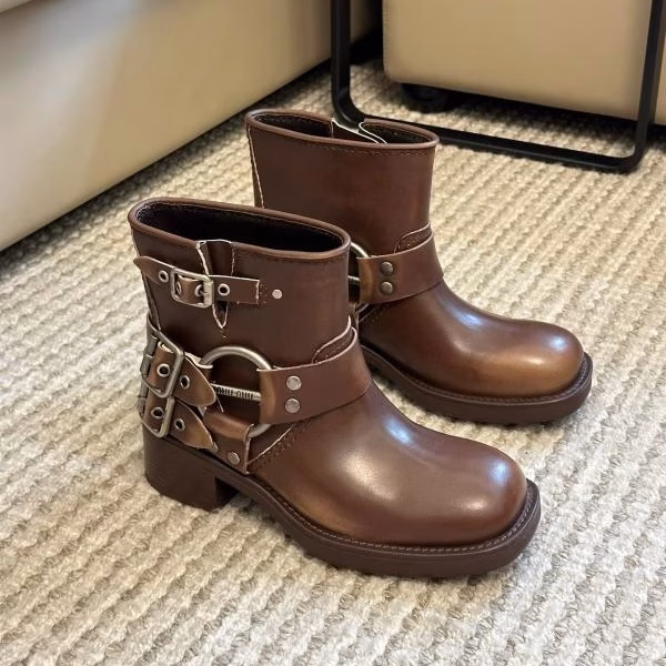 Boot Shaft Design: Features a classic boot shaft buckle design, exuding strong retro appeal with a hint of rugged sexiness, creating a striking personal charm.