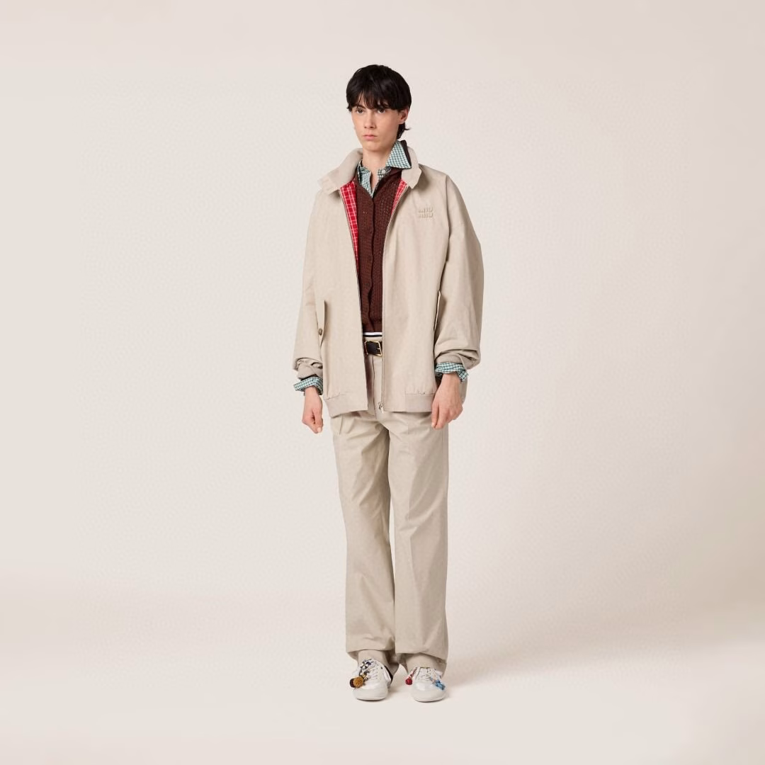 Crafted from light coffee-colored cotton knitted fabric with a red and white checkered lining, it feels soft and comfortable, skin-friendly and breathable, making it suitable for daily wear in multiple seasons. The chest is adorned with brand logo embroidery, and the detailed designs include a ribbed stand collar, knitted hem and cuffs, which enhance the overall sense of layering and comfort. It is paired with a hidden metal zipper placket, featuring a stylish and simple look. With a casual and loose fit, it is suitable for both men and women, easily adapting to various dressing styles. It uses custom accessories and comes with complete three labels, ensuring quality assurance.