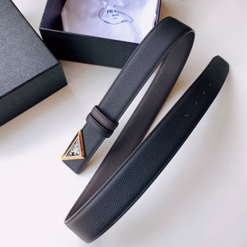 The latest counter version of Prada women’s belt. This belt is adorned with a triangular metal logo, which acts like the finishing touch, outlining exquisite details. It is an ideal accessory for Prada women’s ready-to-wear collection. Width: 3.0cm.