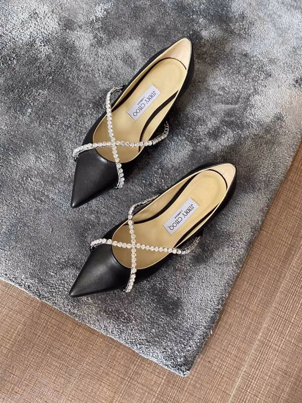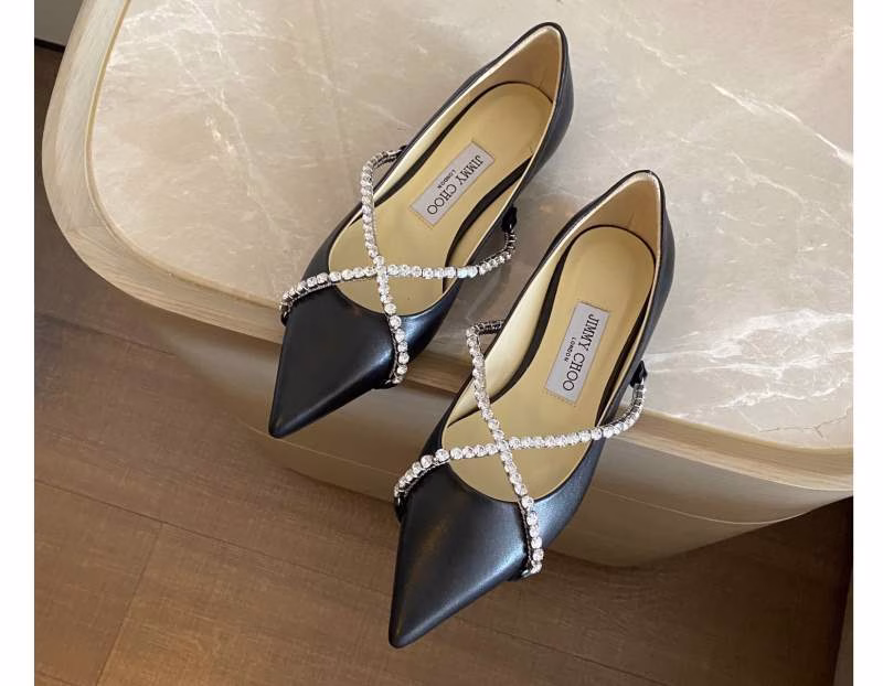 Original Stock Jimmy Choo Full-Grain Crystal Sheepskin Flat Shoes