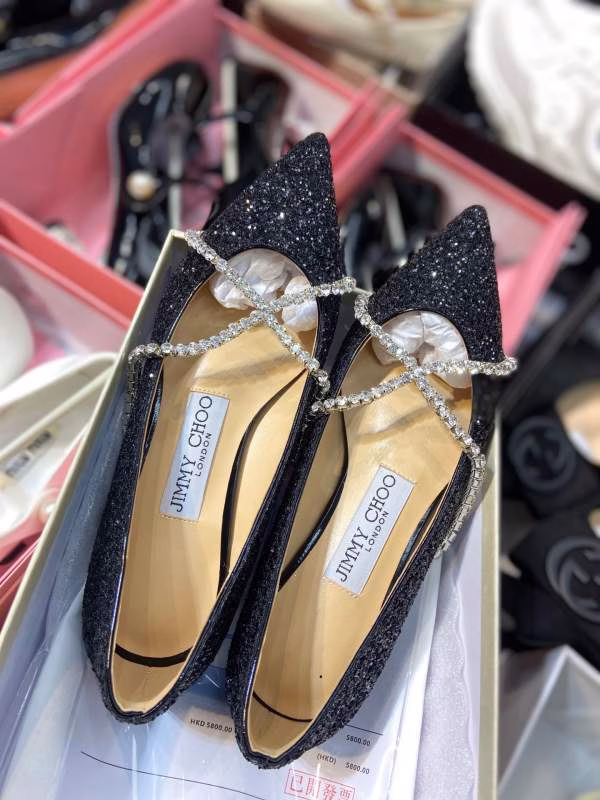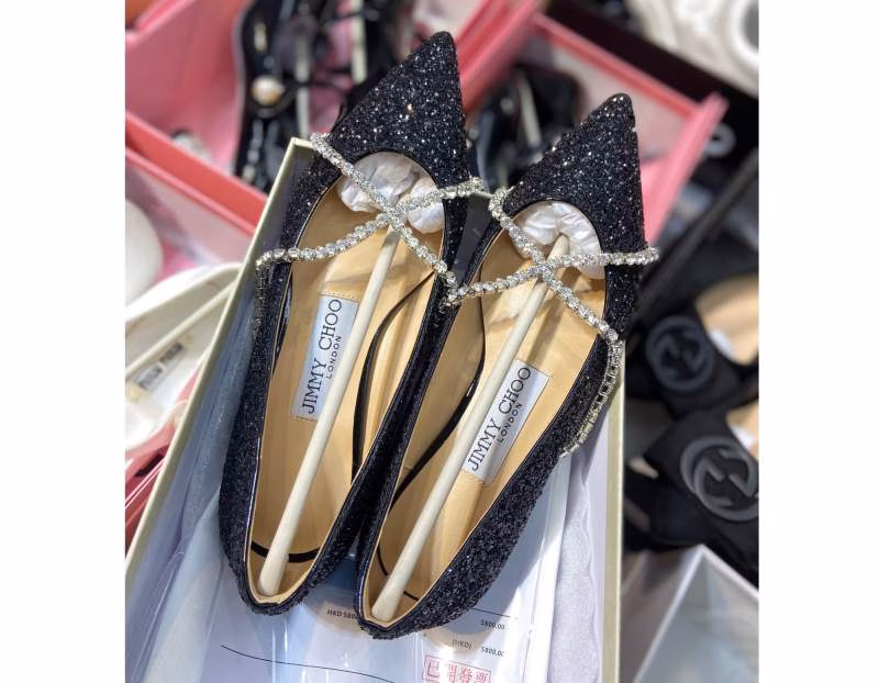 Original Stock Jimmy Choo Full-Grain Crystal Sheepskin Flat Shoes