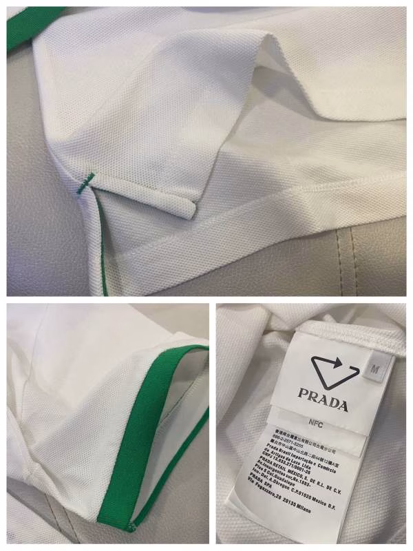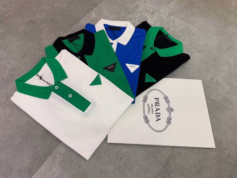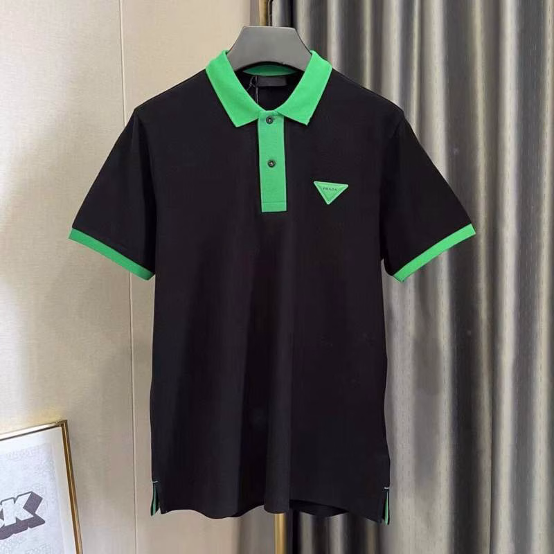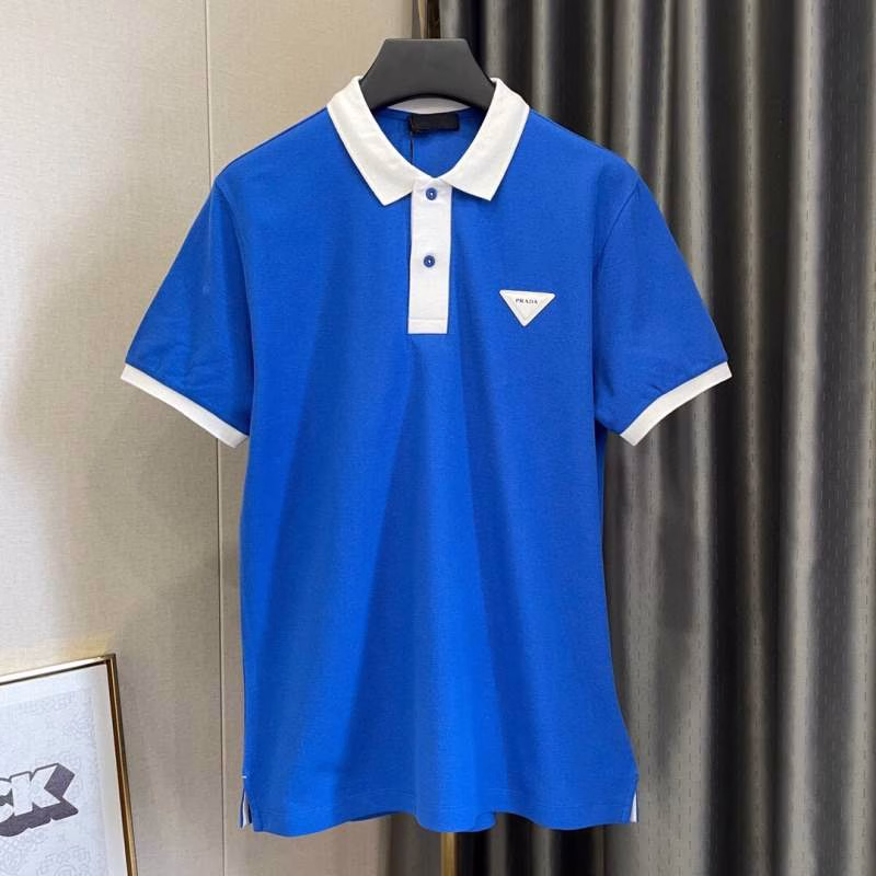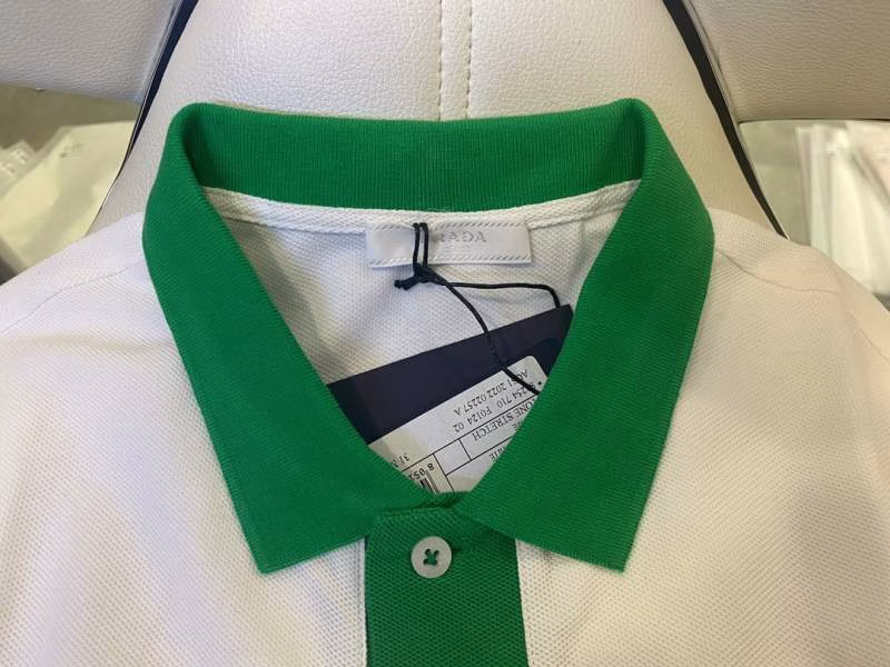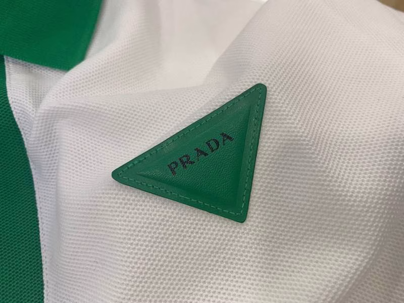 As a well-known luxury brand, Prada’s charm is unparalleled! The color-blocking splicing here leads the trend even more. Prada’s iconic triangular logo is transformed into a leather patch detail, complemented by three-dimensional embossed silk printing, cleverly adorning this rib-knit color-blocking polo shirt. The vibrant, youthful color contrasts are Prada’s favorite this year—simple yet exquisite, exuding casual charm.