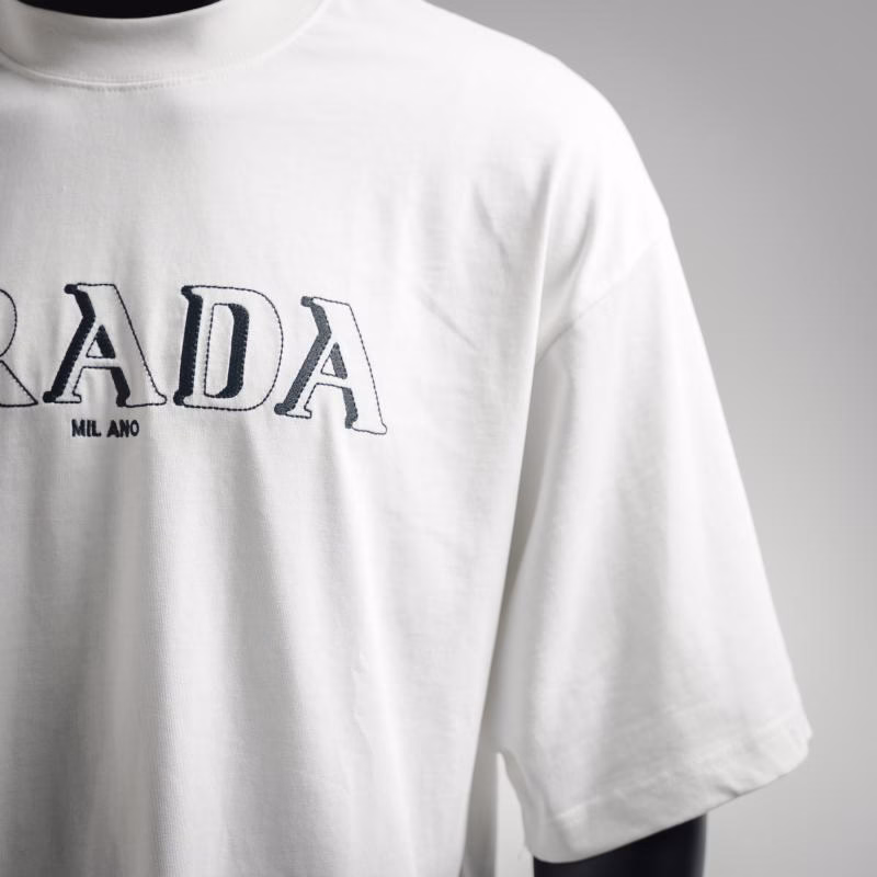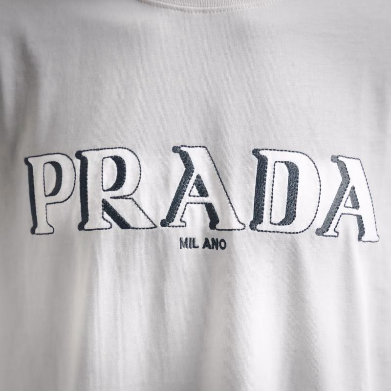 Prada 2025 3D Double Image Letter Embroidered Short-Sleeve T-Shirt (Unisex)