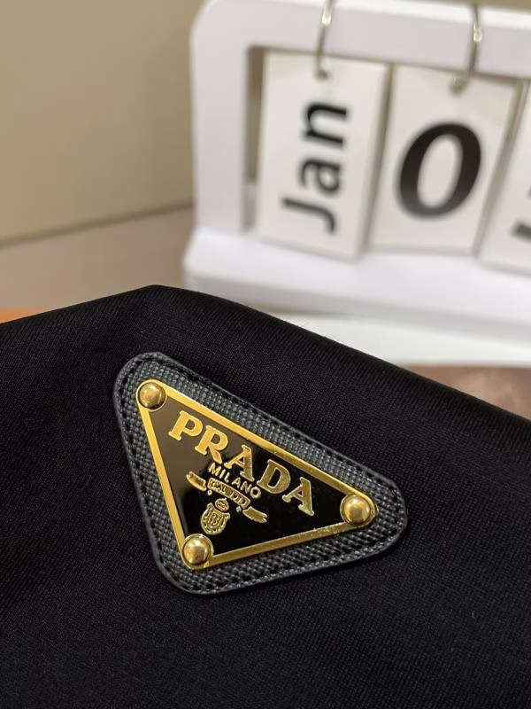 Classic Triangle Logo: The custom enamel-filled metal triangle logo on the chest highlights Prada’s iconic design, perfectly integrating classic and modern sensibilities, and showcasing luxury and fashion.