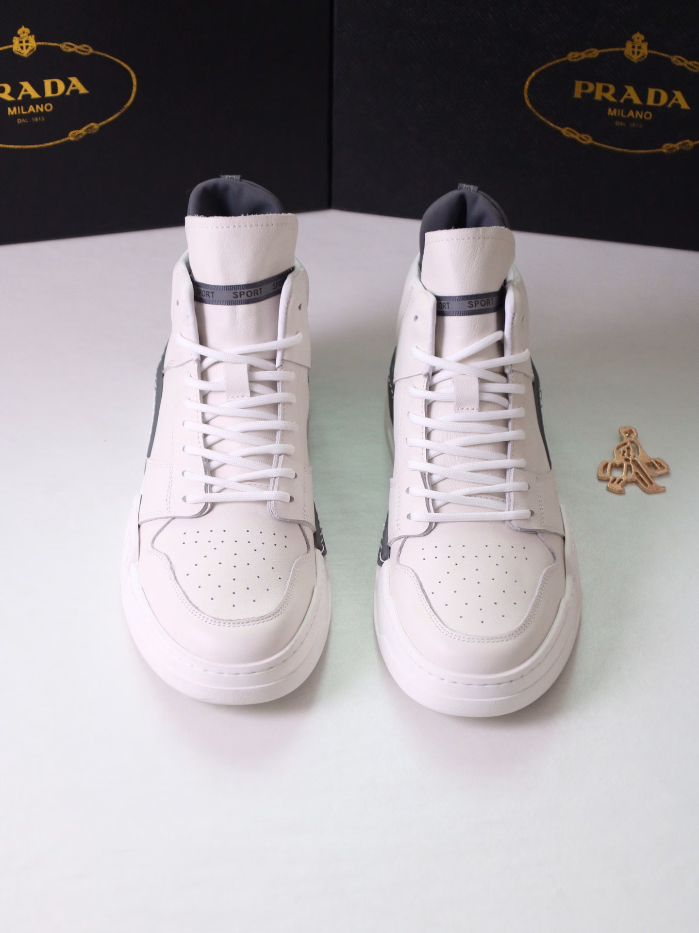2022 New Prada White Shoes with Triangle Logo