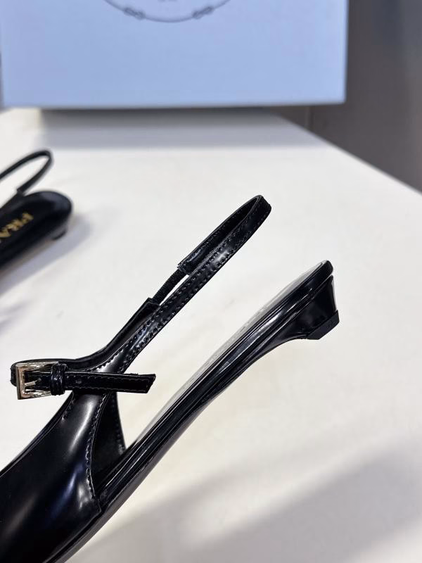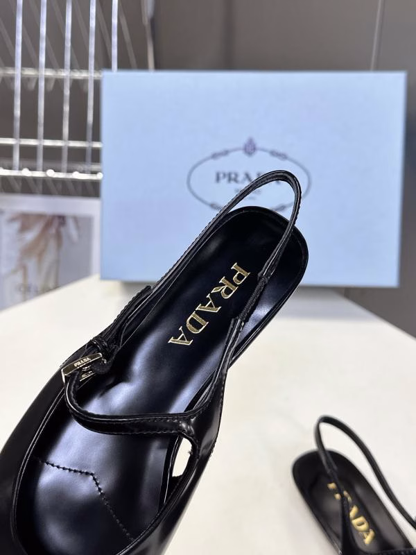 This square-toe high-heel sandal is a stunning piece from Prada’s spring-summer collection, outlining an exquisite and modern urban aesthetic with minimalist lines and classic color schemes. The square-toe design, combined with the capped toe split-grain details, not only enhances the sense of styling but also significantly elongates the leg line, interpreting a high-level dressing taste that balances fashion and wearability.
