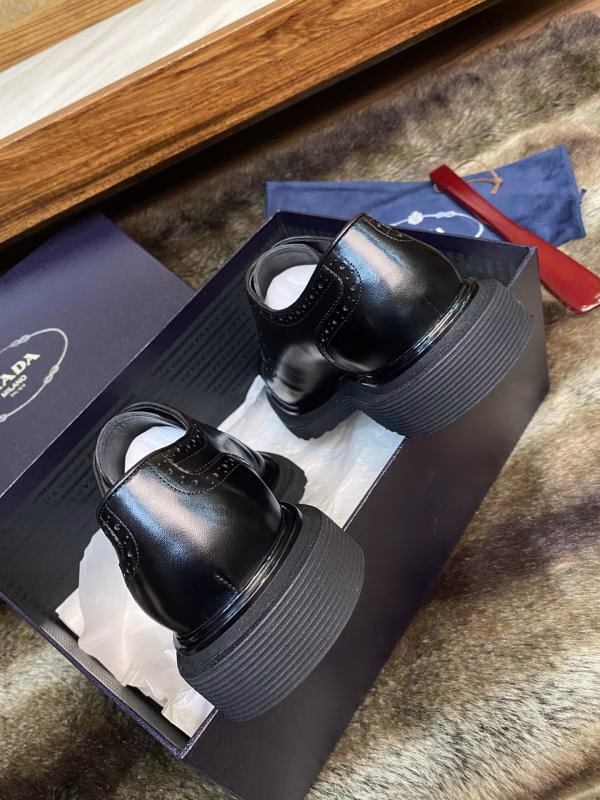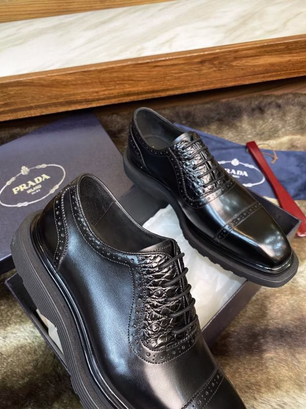 Prada’s Latest Crocodile Belly Patchwork High-End Men’s Platform Lace-Up Derby Shoes