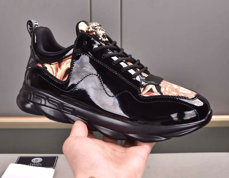 Versace casual and fashionable men’s shoes feature the original plain element metal buckle with the Medusa head design, which is stylish and elegant. The upper is made of patent cowhide and special fabric. The entire lining is imported top-grade sheepskin. It is equipped with the designated wear-resistant, foamed casual outsole. Sizes: 38-44.