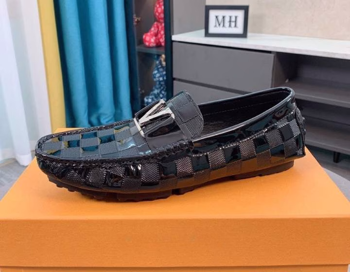 L brand LV genuine leather driving shoes. The leather materials used are all imported patent leather with embossed patterns. The design is luxurious and elegant. The upper is made of cowhide with imported genuine leather lining. Sizes: 38-44.