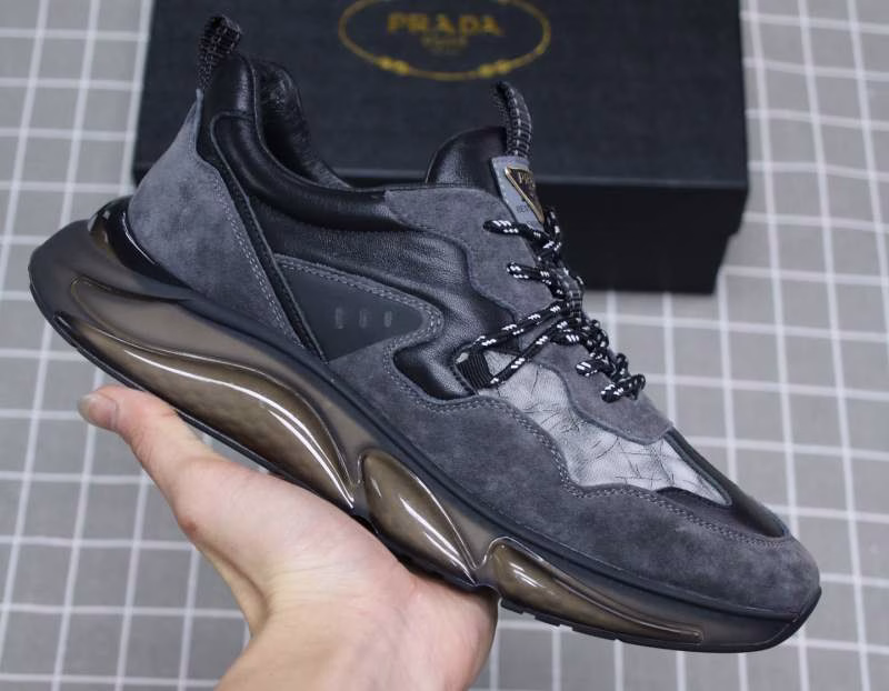 Spring collection PRADA calfskin suede fabric 【Premium cowhide, popcorn airbag sole, ultra-light sports casual shoes】