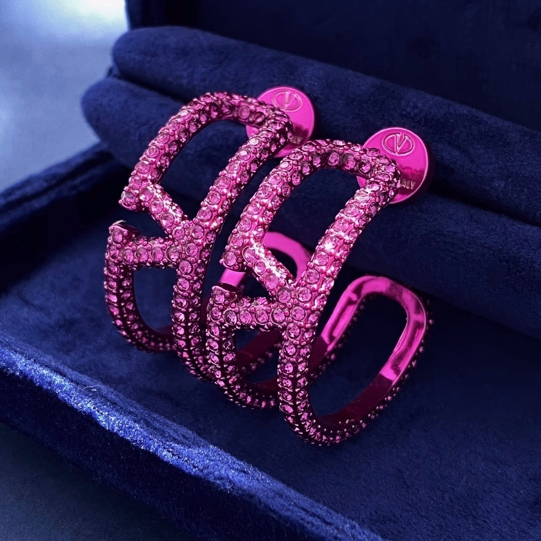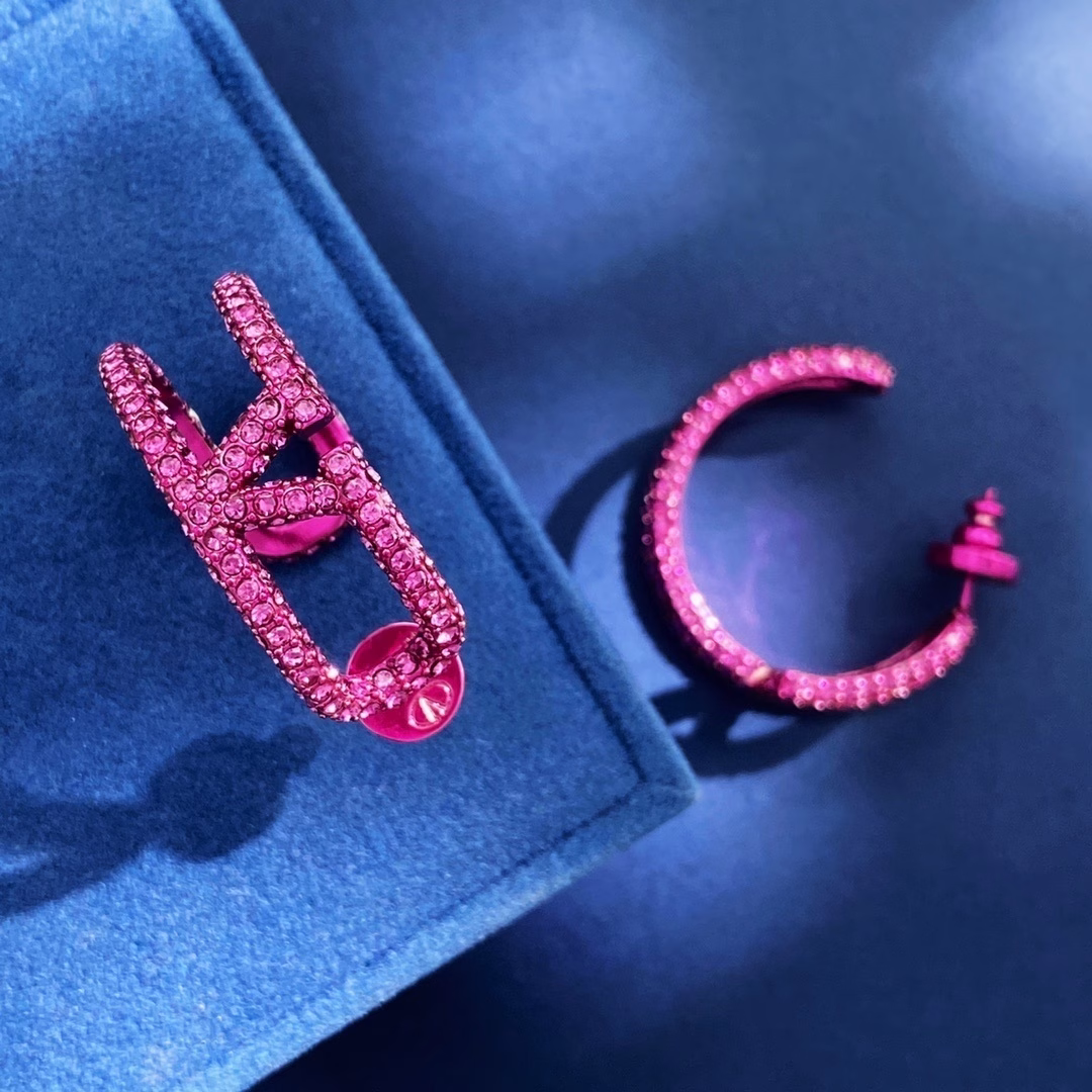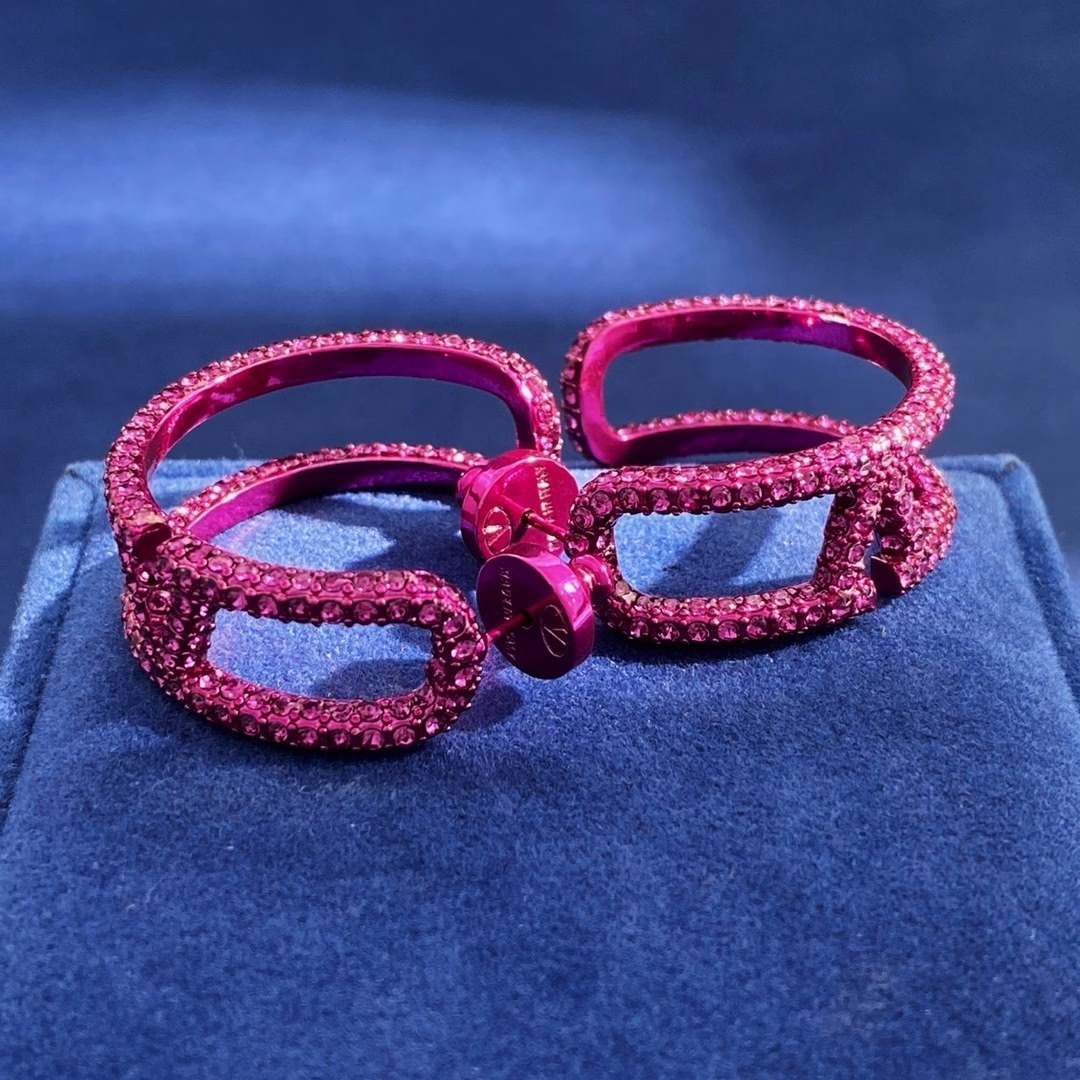 Valentino Pitaya Red Three-Dimensional 3D Circular V Logo Full Diamond Large Earrings, Made of Brass with 18K Gold Plating