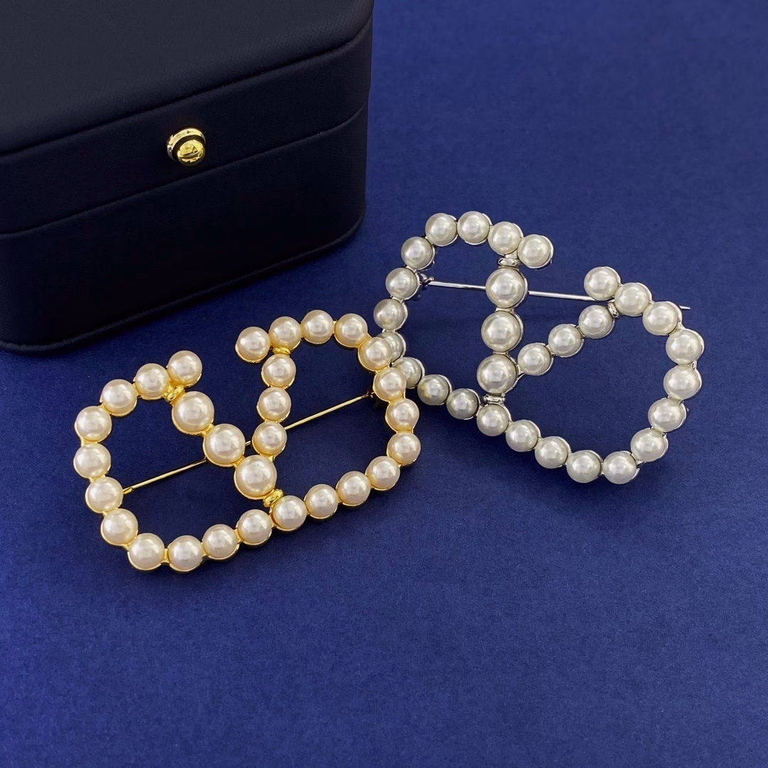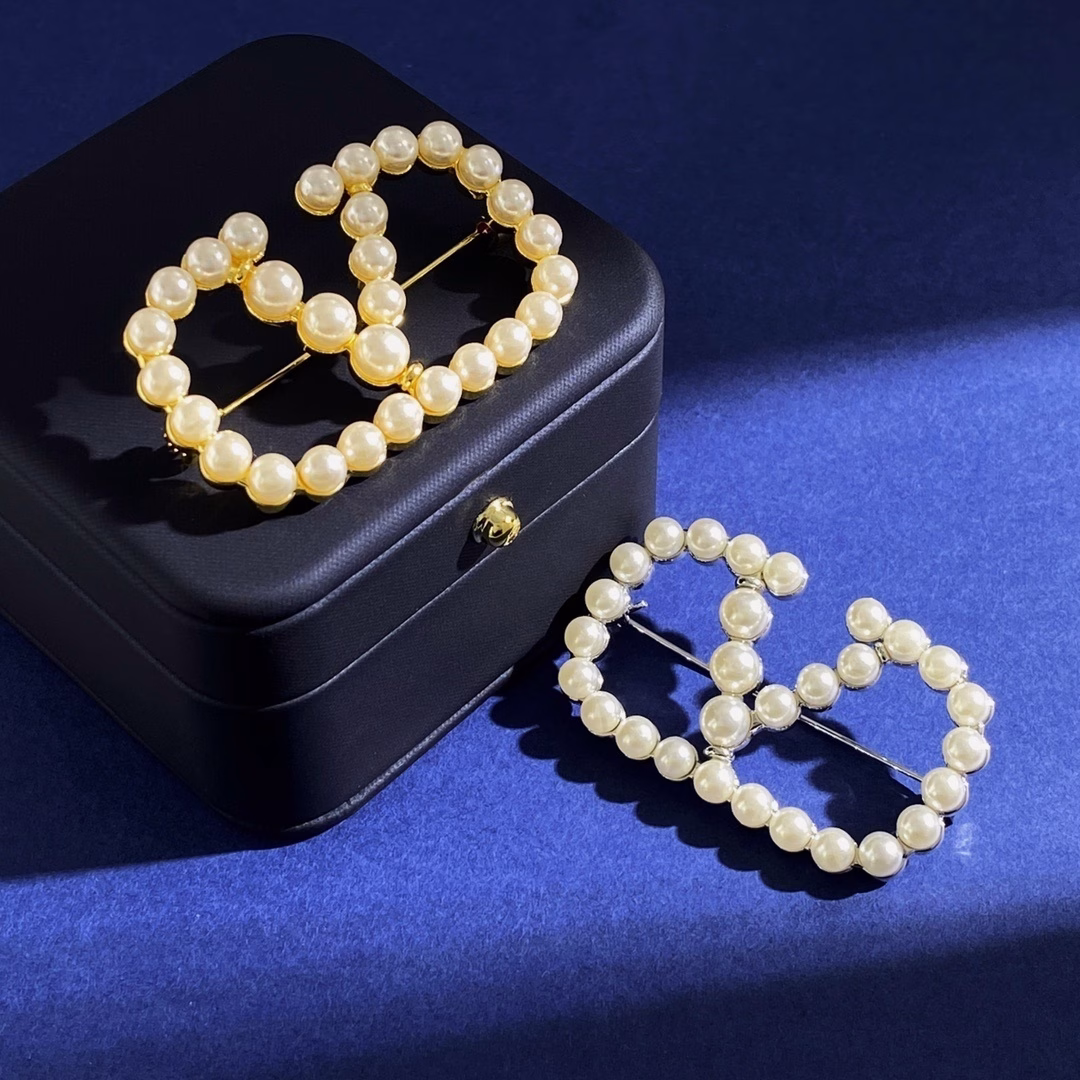 Brooch HL92 65 65 Valentino’s new letter V irregular size resin pearl French temperament personality brooch, made of brass with electroplating