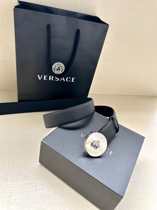 3D Medusa belt buckle with a three-dimensional embossed design, highlighting the brand’s classic elements