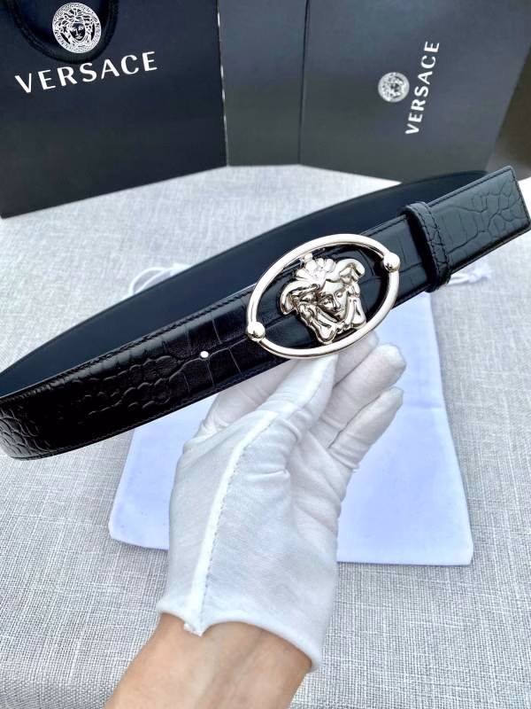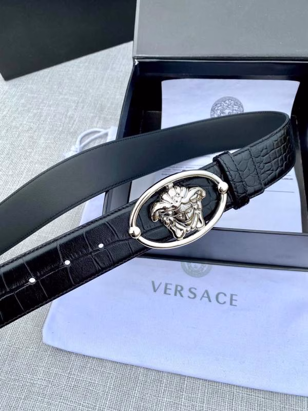 This belt features a crocodile-patterned leather backing and is adorned with the iconic Versace Medusa head buckle, which showcases the brand’s distinctive style. It is an exquisite must-have item for your wardrobe.