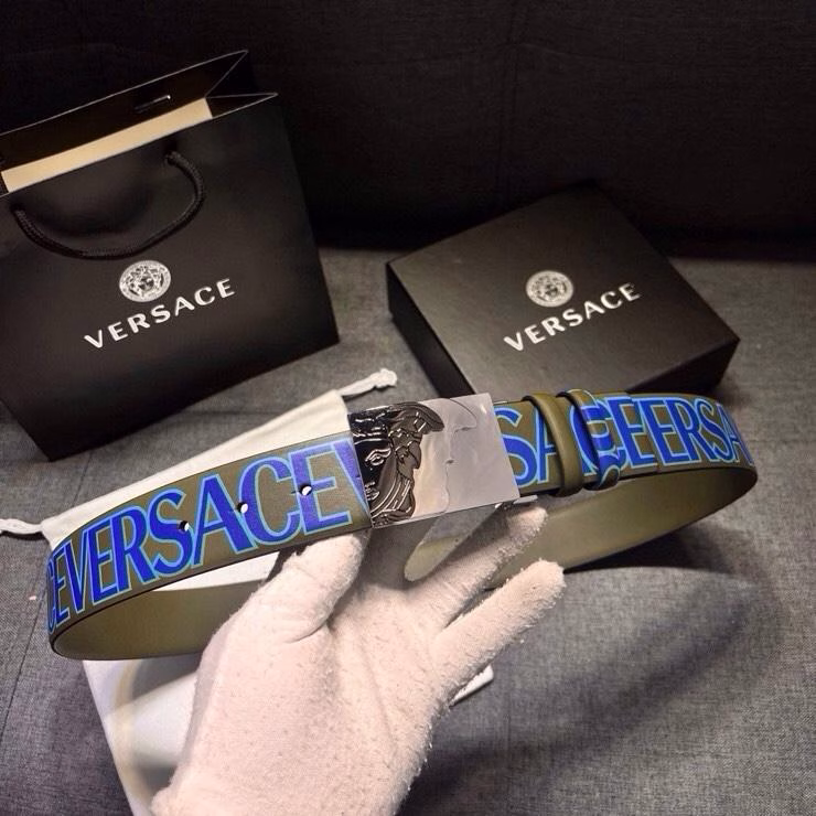 This Versace double-sided belt combines luxurious calfskin with a classic gold buckle design, which is adorned with the iconic Medusa head, showcasing the brand’s unique luxurious temperament. The double-sided design of the belt provides different dressing options, while the green Versace Allover print adds vitality and modernity to the overall appearance.