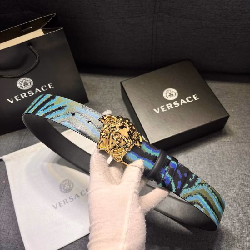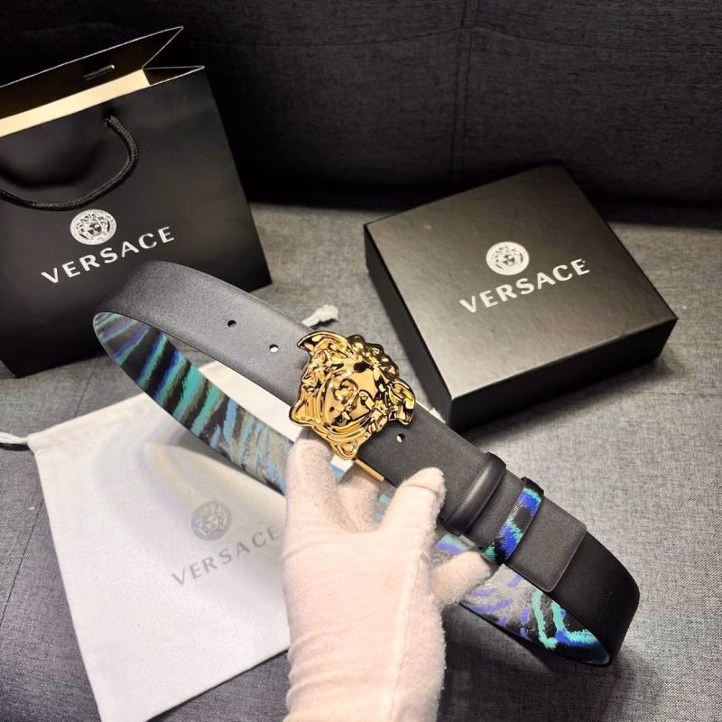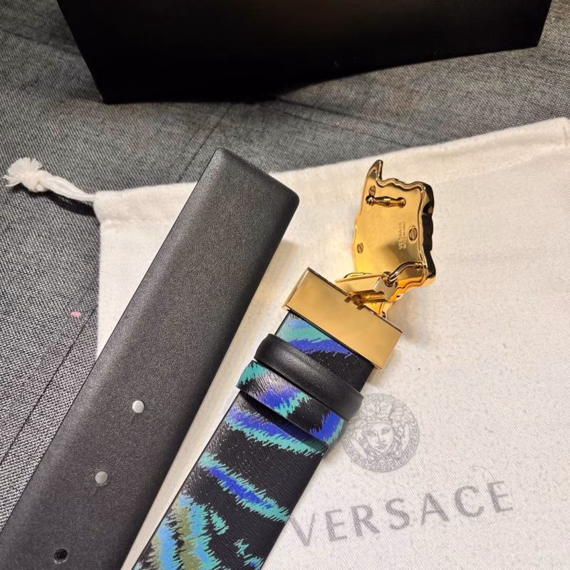 The front is paired with a Medusa hardware buckle, a classic design element of Versace. The exquisite gold buckle shows the brand’s luxury and high-end temperament. This belt can not only add a sense of detail to the outfit but also has multiple styling possibilities.