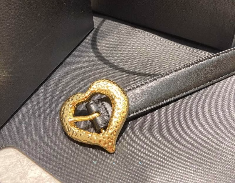 Yves Saint Laurent Original Style Retro Gold-Buckle Heart-Shaped Women's Leather Belt