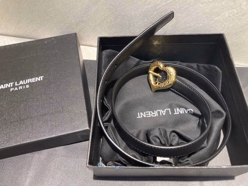 Authentic-Grade Saint Laurent Retro Gold-Buckle Heart-Shaped Leather Belt (Purchasing Agent Service Available)